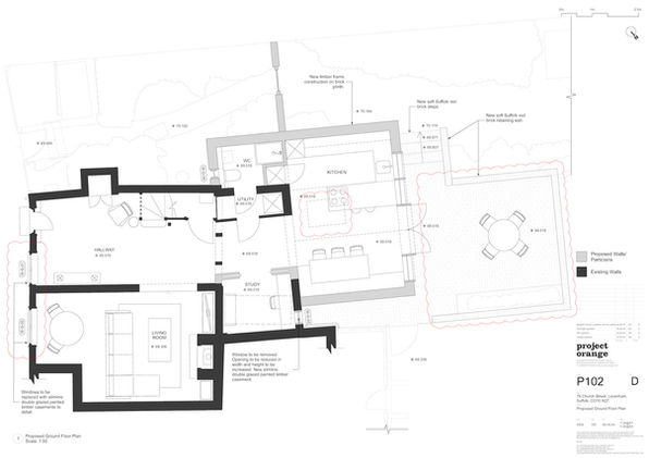 This project proposes the addition of a single storey extension to the North-West side of a Grade II Listed cottage on Church Street, Lavenham. The design demolishes an existing sunroom and replaces it with a pitched roof extension to the rear of the main dwelling. The aim is to create a more generous kitchen and family area with a better connection to the garden.